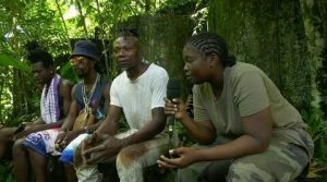 Les membres de l’association Libacadabra de Saint-Jean du Maroni nous emmènent à la rencontre d’Adam Asi, gardien depuis 30 ans et mémoire du site de l’ancienne rhumerie sur l’Île Portal.